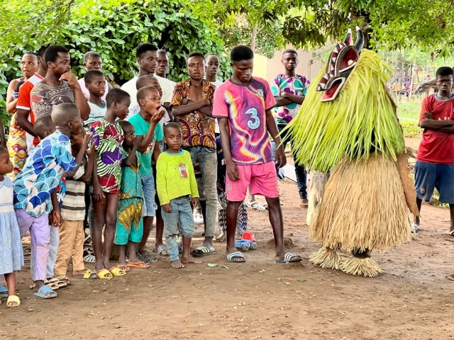 con pañuelos y bailando alegremente. Las máscaras Kple Kple se invocan
