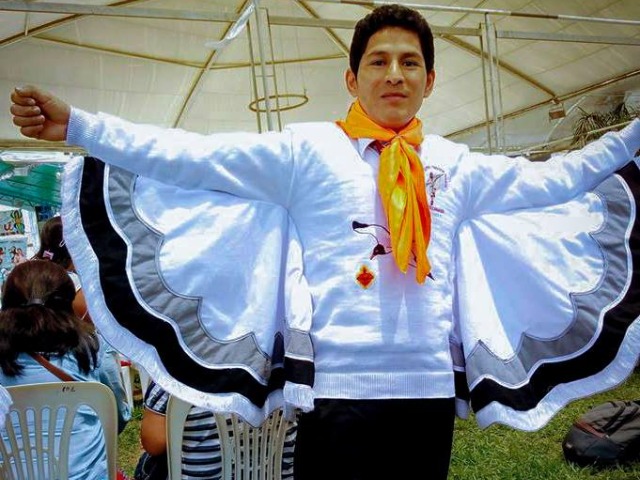 quiu. La vestimenta de la danza consiste en: chompa color blanco con alas